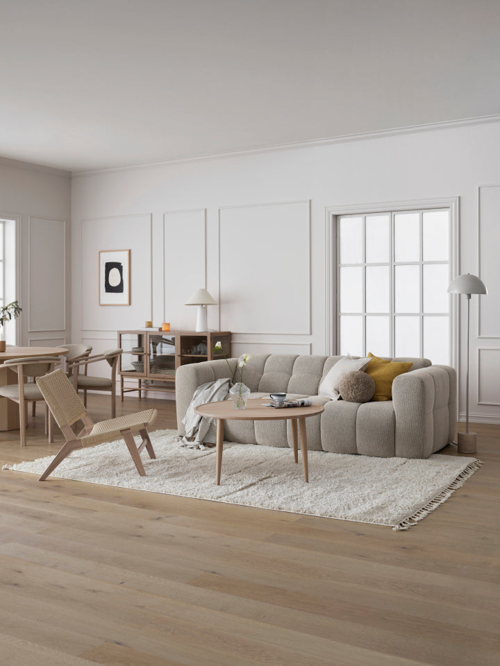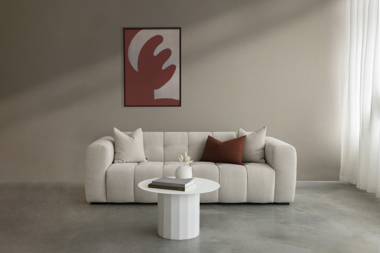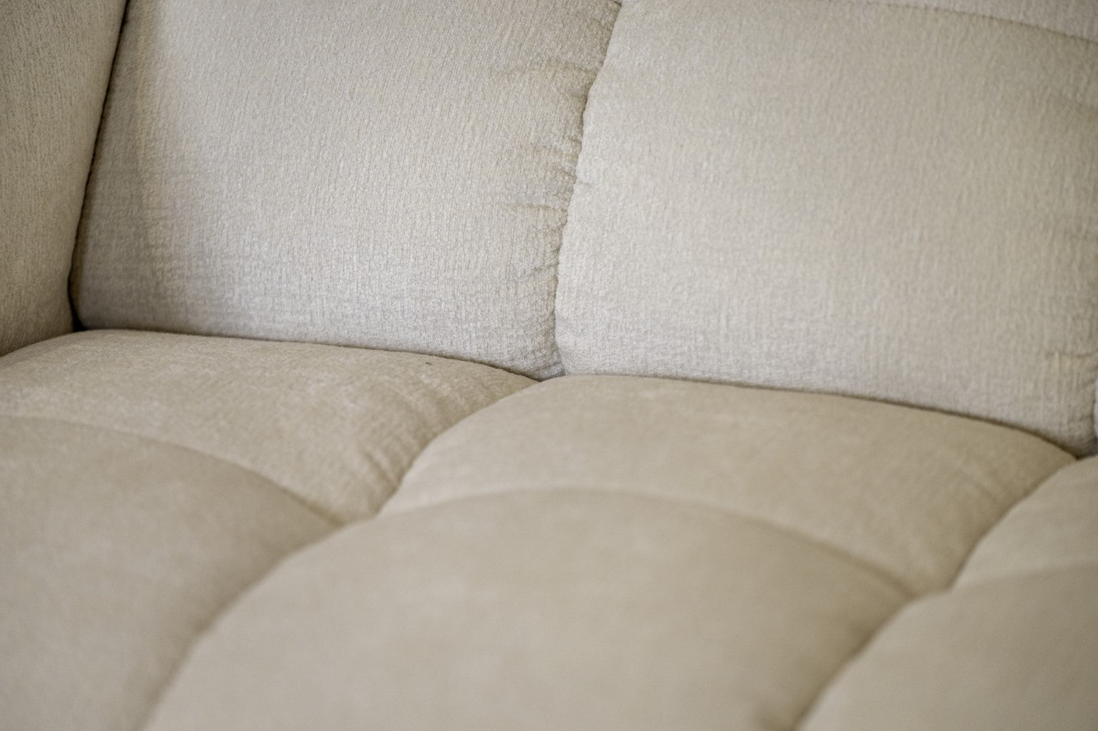 Transformez votre salon en un véritable écrin de douceur avec ce somptueux canapé au design résolument contemporain. Sa silhouette généreuse et ses courbes enveloppantes apportent une sensation de cocooning immédiate, tandis que son tissu texturé écru, doux et lumineux, illumine votre espace avec élégance.