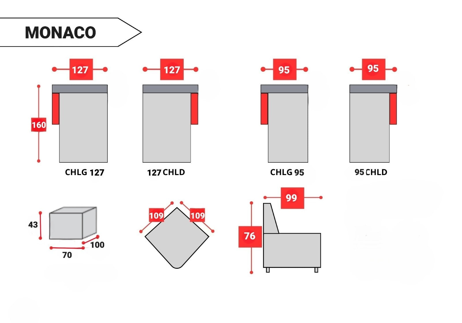 Le MONACO se distingue par son format compact et astucieux. Son petit angle avec chaise longue intégrée invite à la détente, parfait pour s’allonger confortablement après une journée bien remplie, ou pour partager des moments de convivialité. L’assise, généreusement rembourrée, allie fermeté et moelleux, pour un confort sur mesure qui épouse le corps sans jamais l’enfermer.